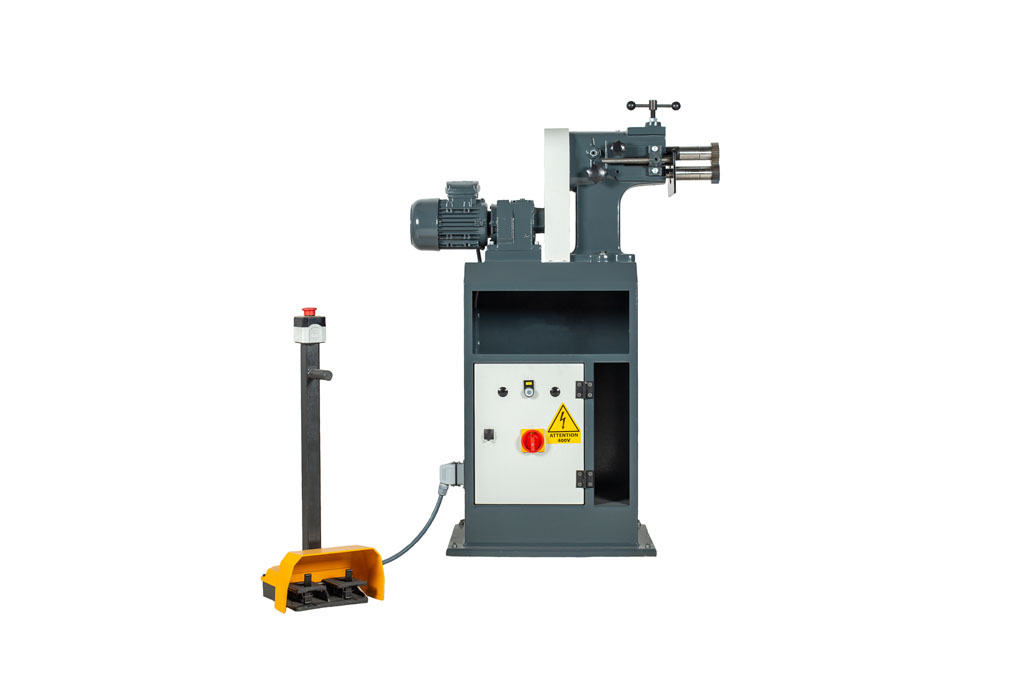 Rollmak BM 125 is a motorized bench-top or stand-mounted beading machine designed for bordering, flanging, and forming reinforcement grooves in sheet metal. This compact unit features a rigid cast-iron body and is engineered for serial or semi-serial processing of thin-sheet components, such as HVAC elements, housings, and covers. The machine comes standard with a comprehensive set of working rollers and an electric drive, making it ready for operation “out of the box.”