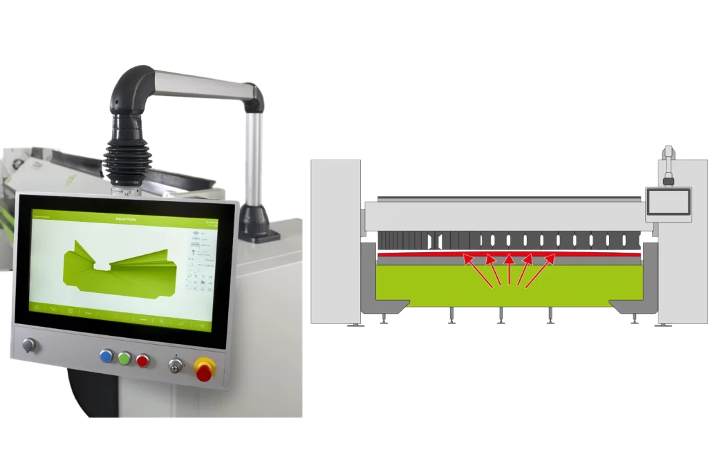 CNC-Controlled Adjustments: Automatic crowning, bending center, and material thickness adjustment.
