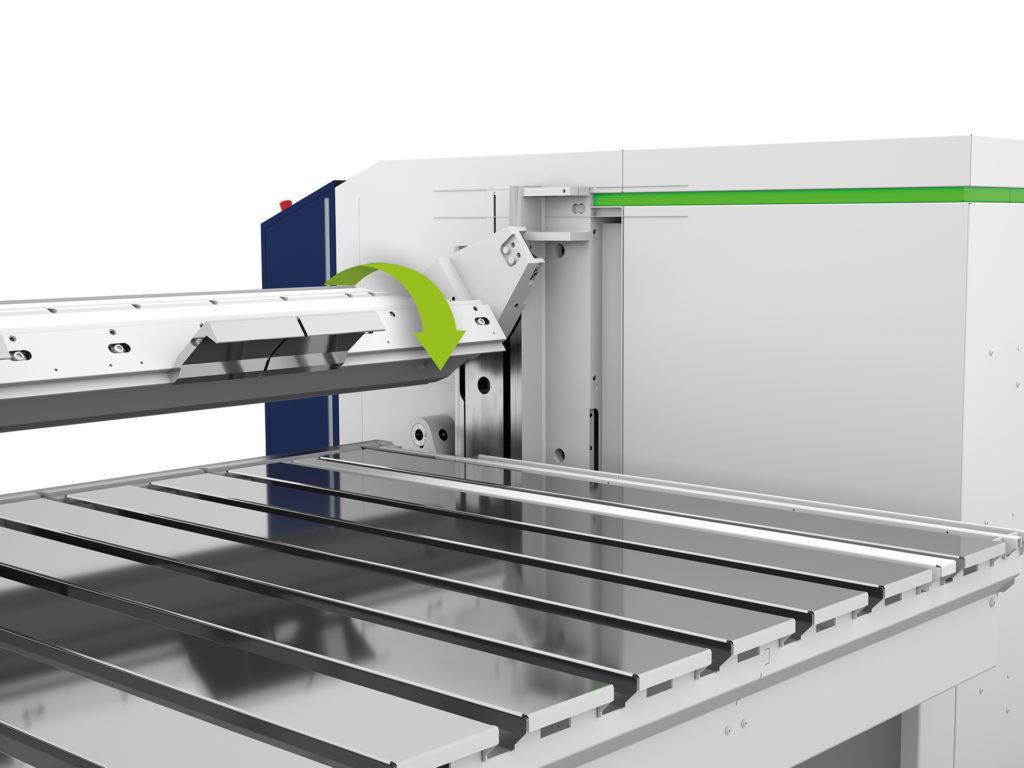 Backgauge Extensions: Extension to 1600 mm, J- or U-shape configurations, pneumatically retractable sectors, and ball transfers.
