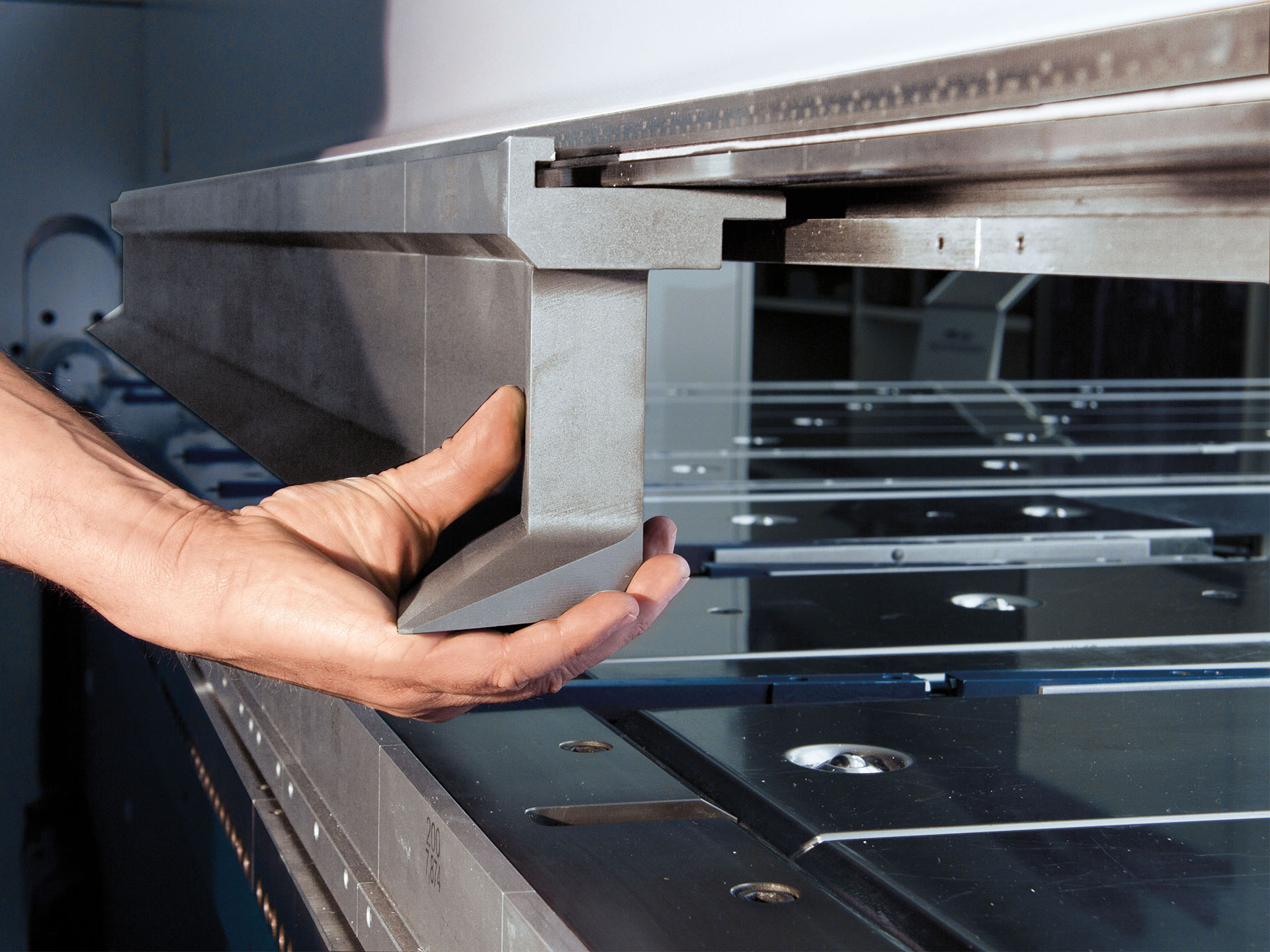 Lower Beam: Features a WZS 16300 blade (1100 N/mm2) with slots for backgauge fingers.