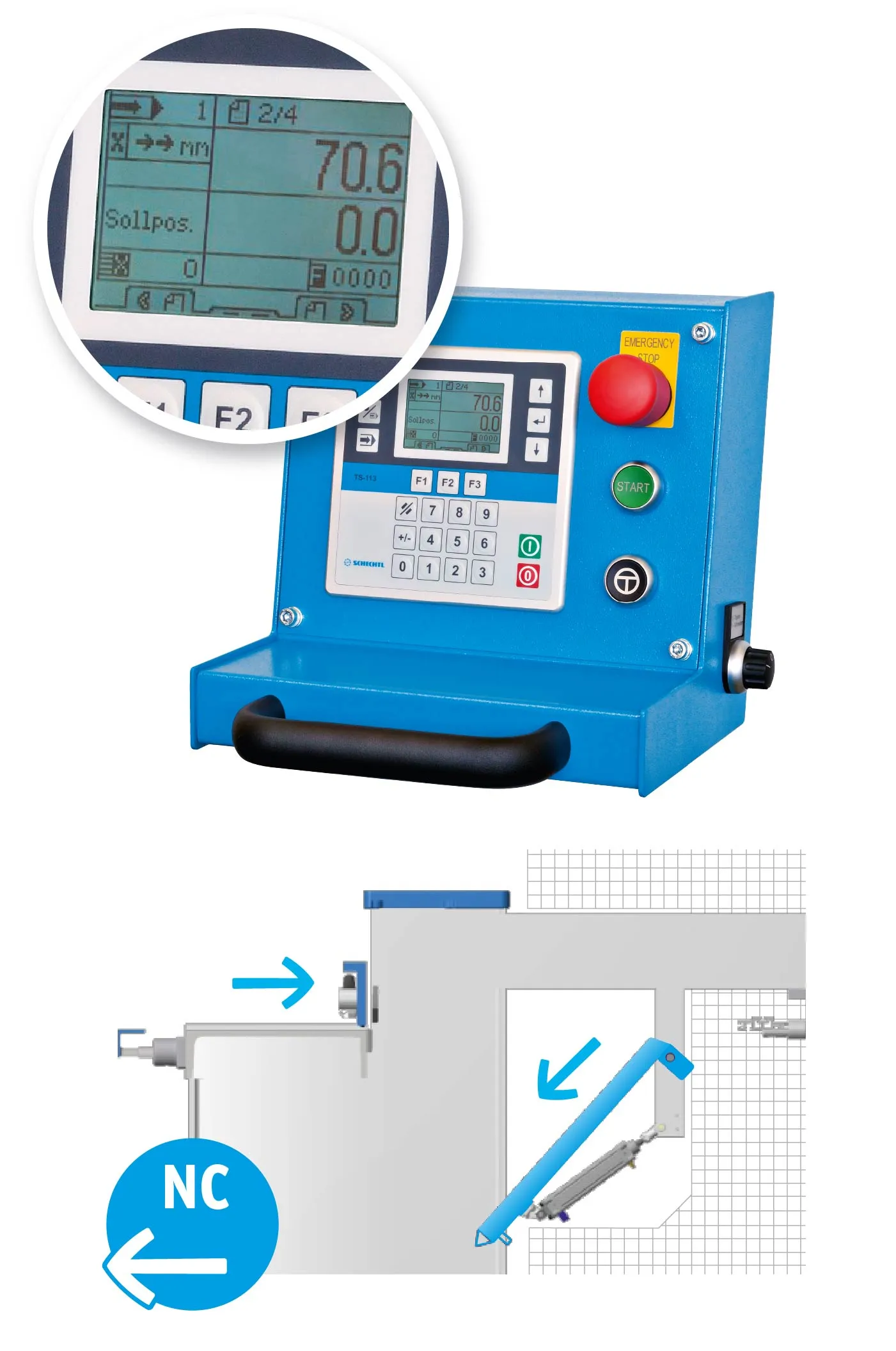 • Контролер / цифрова панель (у комплектаціях типу NC), з пам’яттю програм чи підрахунком кількості різів.