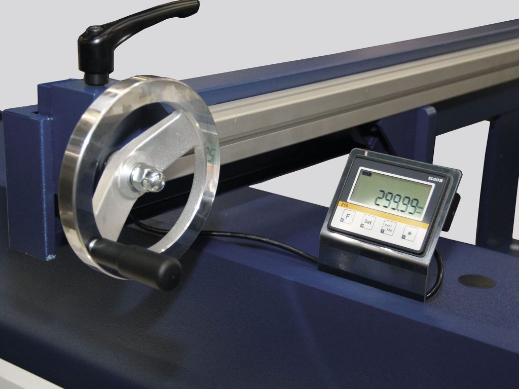 • Задній упор: Ручний задній упор з робочим діапазоном 750 мм та цифровим зчитуванням.