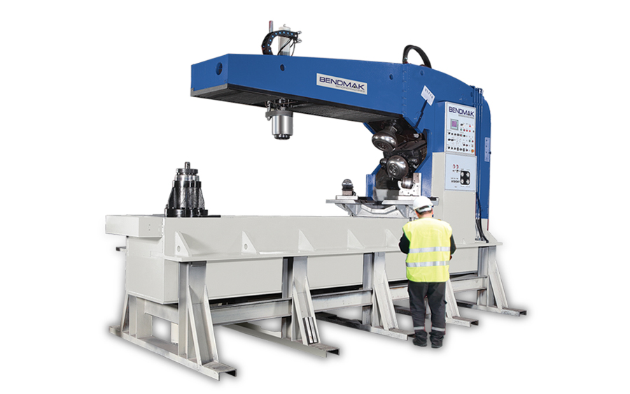 BENDMAK BFM25хD від Bendmak Makine (Туреччина) — це повністю гідравлічний фланжувальний верстат, розроблений для високошвидкісного та точного формування крайового фланця на круглих заготовках днищ (бочкоподібних днищах) резервуарів, котлів та посудин високого тиску. Верстат працює за принципом холодного або гарячого спінінгу (обкочування) краю попередньо відформованої круглої заготовки. Його конструкція із суцільнозварного корпусу з наступним зняттям внутрішніх напружень забезпечує мінімальну вібрацію та довговічність, а гідравлічна система захищена від перевантажень.
