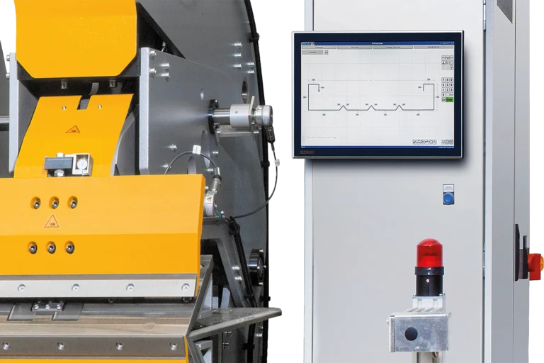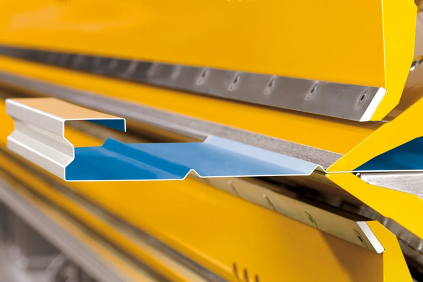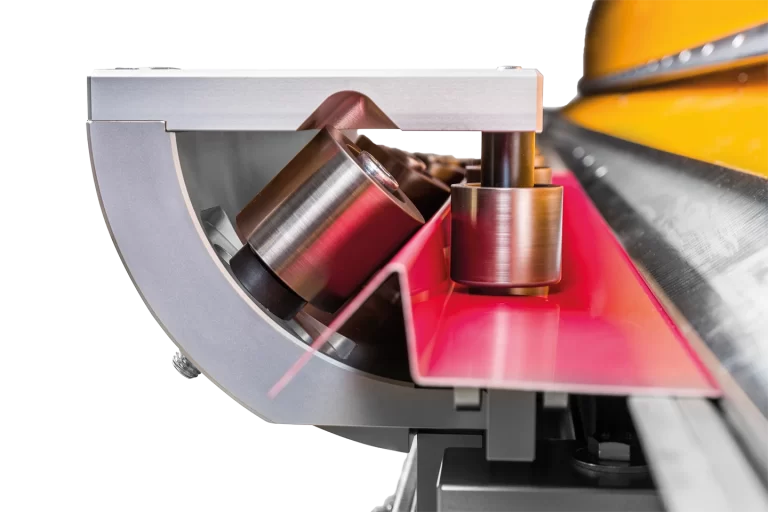 • Hydraulic Automatic Material Thickness Adjustment: The system automatically sets the required air gap between the tools according to the sheet thickness, guaranteeing the correct radius and a stable result.