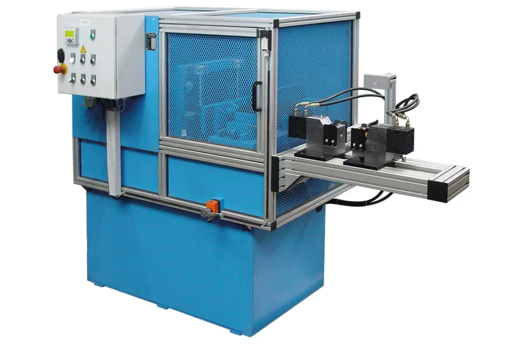 Prinzing KFE 1 is a hydraulic or electromechanical forming machine specifically designed for flanging (forming collars/beads) on the edges of pre-cut holes (taps, branches) in cylindrical or flat parts. The machine is used to add extra rigidity to the opening and provide an ideal surface for subsequent pipe connection (e.g., in the production of tees, elbows, or distribution elements for ventilation systems). The KFE 1 operates on the principle of plastic deformation of the edge, creating a neat, strong collar.
