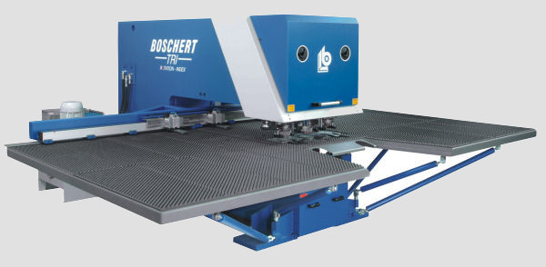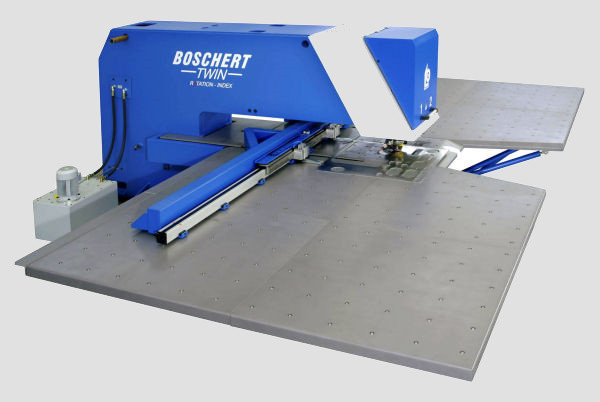 Boschert TWIN 1000 x 2000 — високопродуктивний координатно-пробивний верстат із двома незалежними пробивними головками, спроєктований для ефективної серійної обробки листового металу середнього й великого формату. Машина поєднує жорстку суцільнозварну С-подібну раму, користувацьке ПЗ для швидкого перетворення DXF у CNC-програми, опціональні мультиінструментальні системи (Revotool) і комплекти для нібблінгу/формування/маркування. TWIN особливо ефективний там, де потрібна висока швидкість обробки без простоїв на зміну інструментів — завдяки двом головкам можна без переналадки виконувати різні операції.