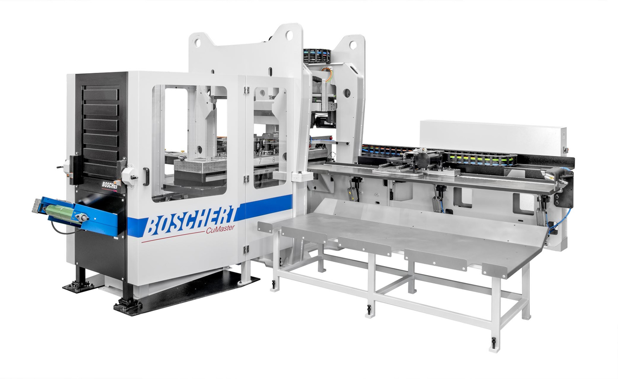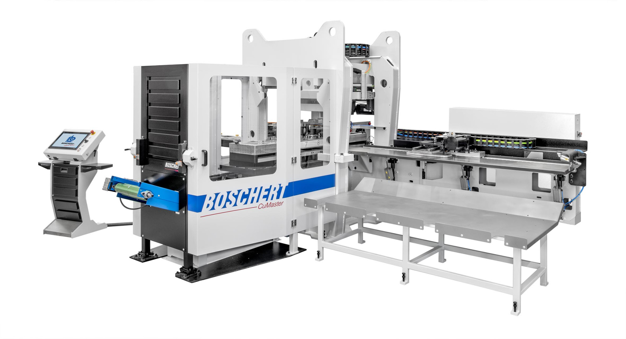Boschert CuMaster — універсальна, промислова машина для високопродуктивної обробки шин і смуг із міді, алюмінію та сталі. CuMaster призначена для безвідходної (no-leftover) обробки широких шин: може працювати з матеріалом до 305 мм ширини і до 20 мм товщини, одночасно забезпечуючи великий набір інструментів (мультиінструменти) та автоматичну подачу/вивантаження. Машина проєктується як модульна лінія з автоматичними рухомими притисками й опціями для різання, маркування, нарізування різі та штампування — все в єдиному, інтегрованому циклі.