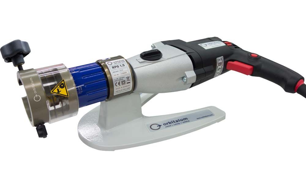 Orbitalum RPG 1.5 — це потужніша торцювальна машинка, що розширює діапазон обробки до більших діаметрів та товстіших стінок порівняно з RPG ONE. Вона забезпечує таку ж високу якість обробки (без задирок) і призначена для інтенсивного використання в промислових умовах. Також доступна у мережевій та акумуляторній (BATTERY) версіях.