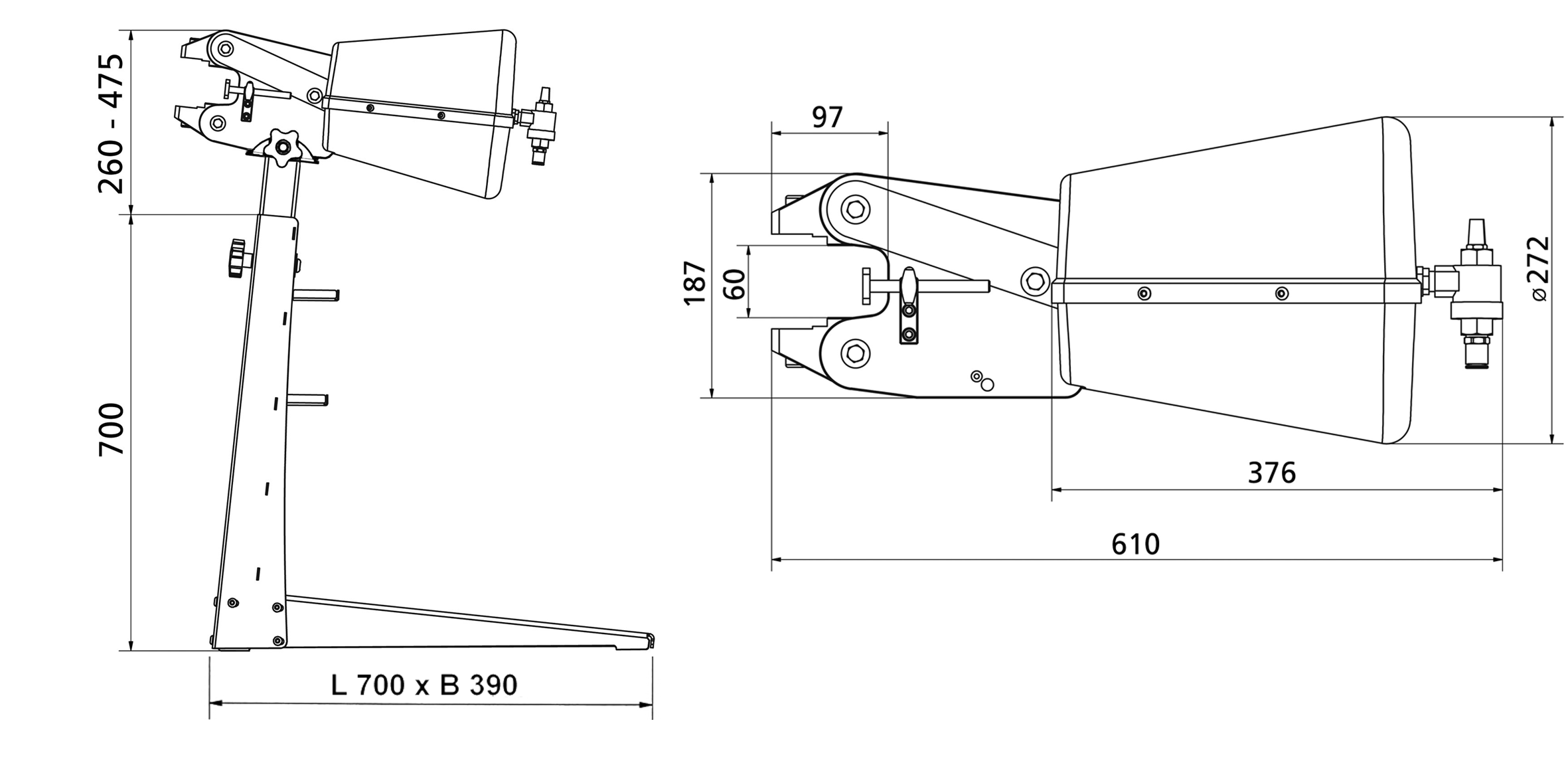 Eckold Handformer HF 100 PA — це професійний стаціонарний формувальний верстат (Kraftformer), який є модифікацією моделі HF 100 із заміною ручного важеля на потужний пневматичний привід (PA 100). Цей верстат призначений для високоточного холодного формування листового металу товщиною до 1.5 мм шляхом стискання (висадки) та розтягування (витяжки).
