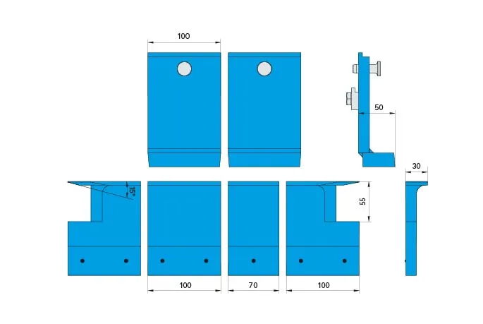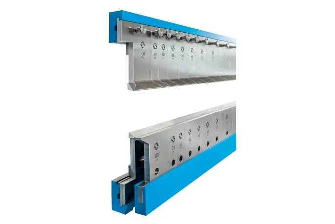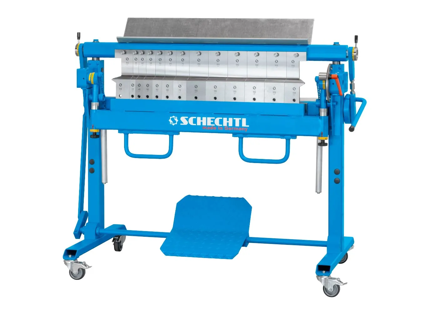 Schechtl UK 100 – сегментний поворотно-згинальний верстат, розроблений для виготовлення складних профілів, коробів і касетних форм. Машина дозволяє виконувати згини з усіх боків заготовки, а також працювати з ніжками вгору та вниз. Завдяки універсальним сегментам із системою швидкого затискання та широким можливостям регулювання, UK 100 є справжнім багатофункціональним інструментом для майстерні чи будівельного майданчика.