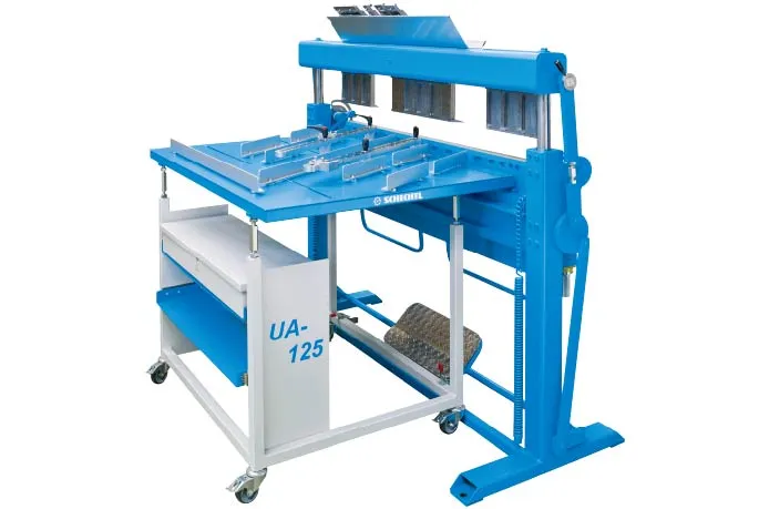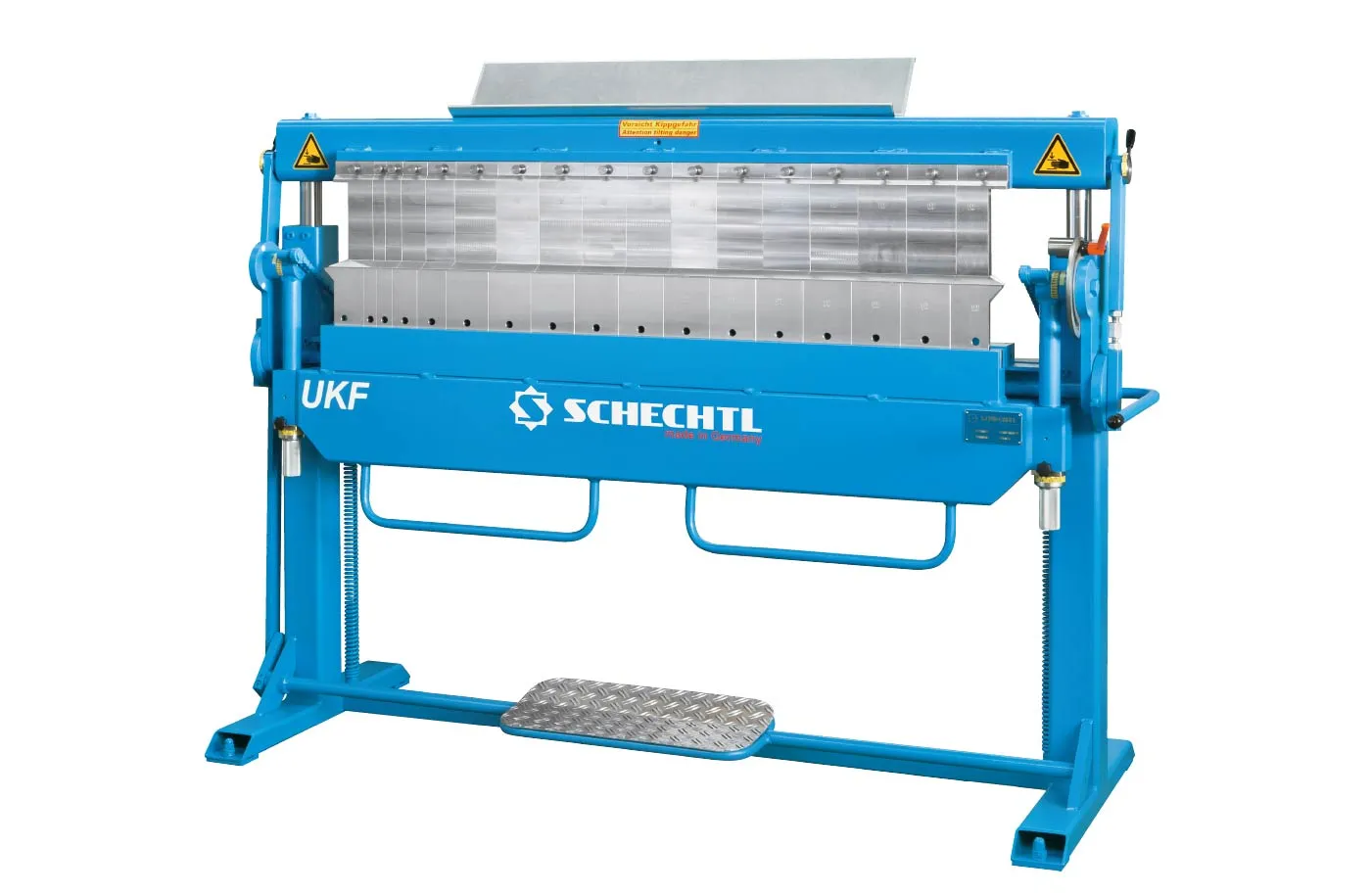 Сегментний згинальний верстат UKF 150 має робочу довжину 1500 мм та згинає сталь товщиною 1,50 мм. Надзвичайно великий вільний простір UKF дозволяє виготовляти особливо великі замкнуті форми. Верстат Schechtl UKF виконує виробництво спеціальних форм, коробчастих та касетних форм, а також завдання з налаштування. На затискній балці UKF пропонує місце для сегментних вставок висотою 160 мм або 180 мм. Сегменти на нижній та згинальній балках мають висоту 120 мм – на 100% більше вільного простору порівняно з UK або UKV. Це дає багато переваг під час виробництва великих, закритих форм.