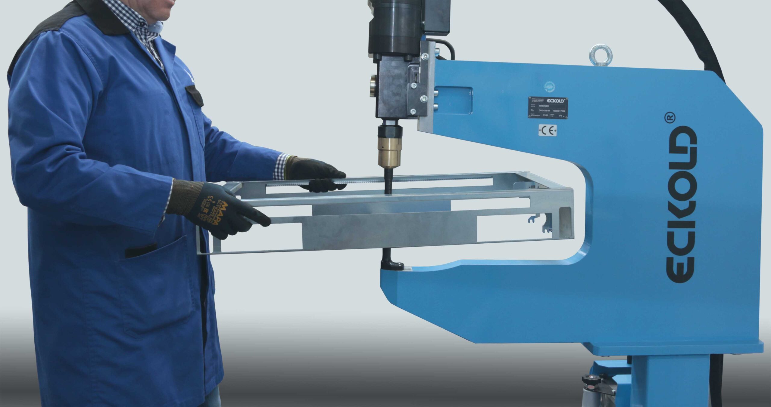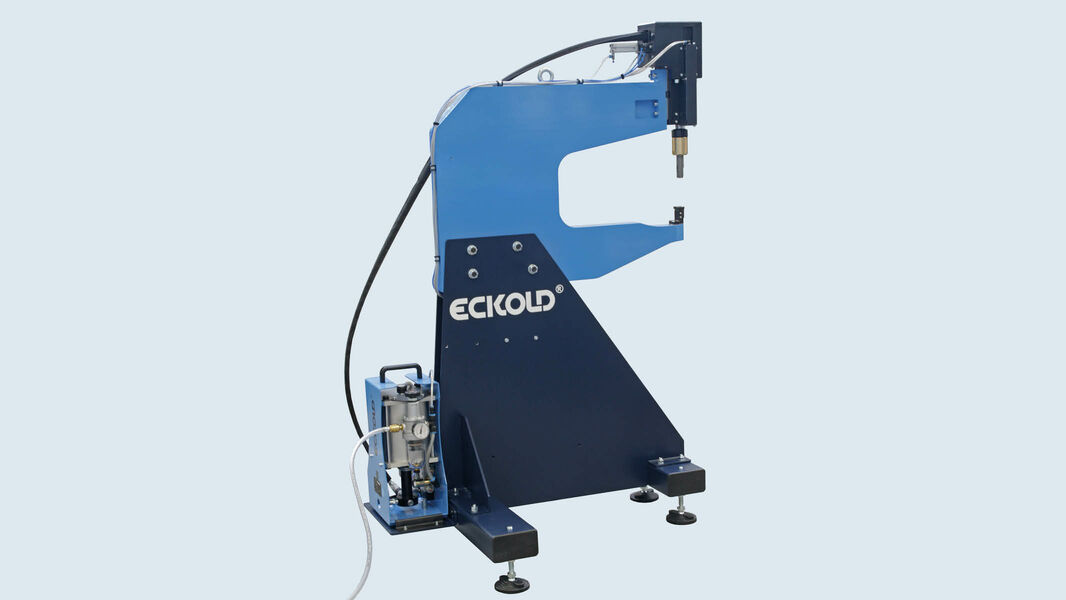 ECKOLD DFG 450/50 PH is a base-level stationary clinching unit that provides an economical entry into stationary clinching production. The machine features a massive throat clearance for processing bulky and hollow workpieces, an integrated pressure intensifier, and an adjustable pressing force of up to 50 kN. Both the closing and the working stroke are activated via a foot pedal, leaving the operator’s hands free to position the part. Designed for continuous operation in workshop environments, the DFG 450/50 PH is ideal for HVAC/ductwork, soundproofing structures, general metal fabrication, signage, and roofing industries.