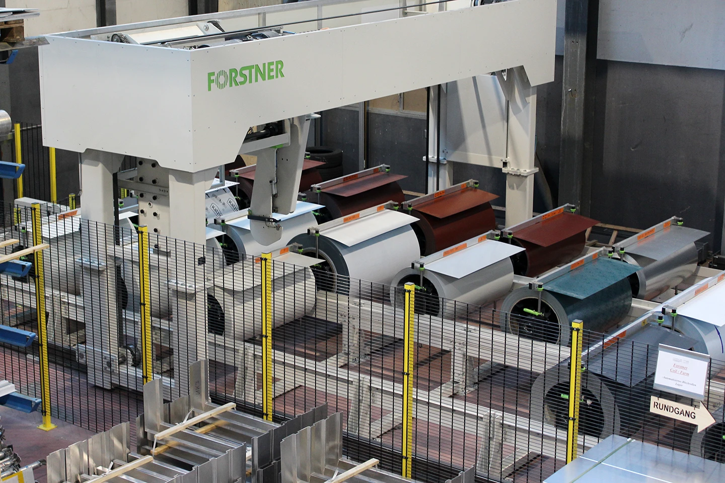 Forstner COILFARM — це високопродуктивне, інноваційне рішення для зберігання та гнучкої подачі великої кількості рулонів листового металу на лінії різання (CTL lines). Ця система революціонізує управління запасами рулонів, використовуючи вертикальний простір та автоматизацію для забезпечення негайного доступу до широкого асортименту матеріалів (за товщиною, якістю та кольором). Фактично, це автоматизований “склад” рулонів, інтегрований у виробничий потік.
