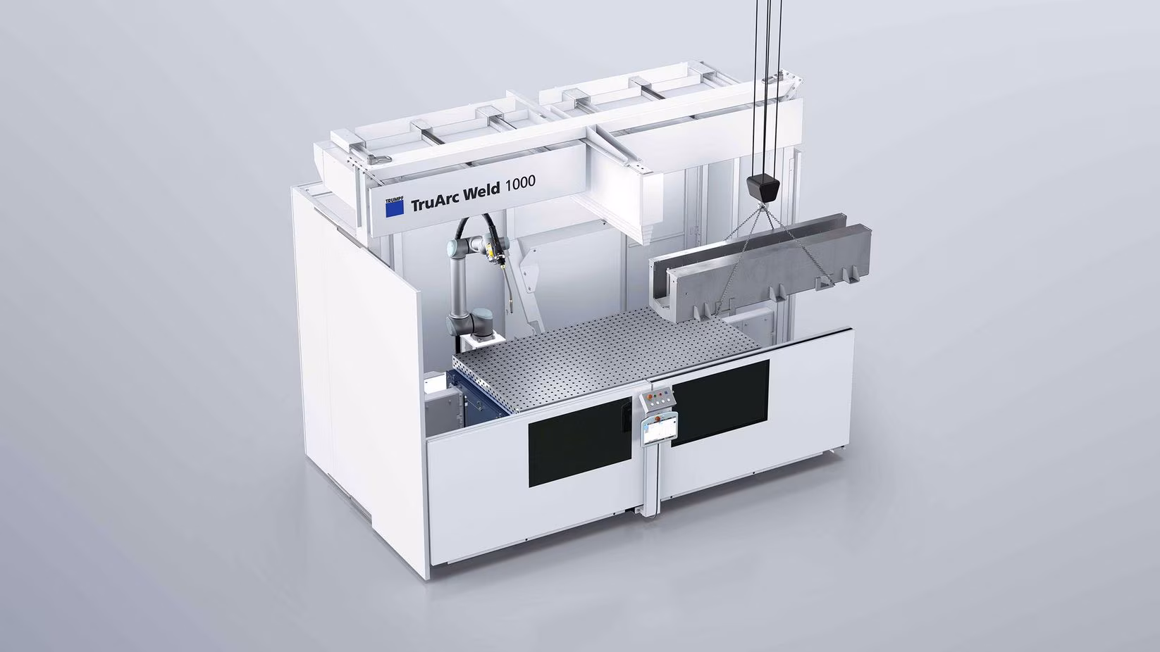 TRUMPF TruArc Weld 1000 — це повністю обладнана, автоматизована зварювальна комірка для дугового зварювання (MIG/MAG), що забезпечує простий вхід у роботизоване зварювання. Завдяки використанню коллаборативного промислового робота (кобота), програмування зводиться до мінімуму (навіть для одиничних деталей та малих серій), оскільки оператор може просто “навчати” робота, переміщуючи його вручну. Комірка оснащена високопродуктивним зварювальним джерелом Fronius TPS 320i C PULSE та 3D зварювальним столом Demmeler. Машина сертифікована TÜV та CE, має інтегровану систему безпеки та витяжки.