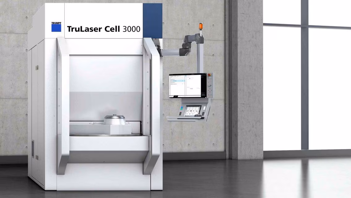 TruLaser Cell 3000 — компактний високоточний 5-осьовий оптоволоконний лазерний комплекс від TRUMPF, призначений для багатофункціональної обробки: 2D/3D-різ, лазерне зварювання і лазерне наплавлення (Laser Metal Deposition, LMD). Машина розрахована і на одиночні прототипи, і на серійне виробництво з високим рівнем автоматизації — її сила в універсальності: швидка заміна процесних адаптерів дає змогу поєднувати різні процеси на одній машині.