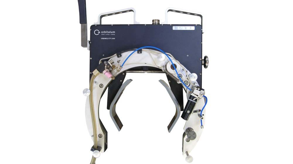 ORBIWELD TP 1000 — це найбільша базова відкрита орбітальна зварювальна головка серії TP, призначена для зварювання труб великого діаметра у діапазоні від 120 до 275 мм. Головка оснащена спеціальними затискними пластинами для надійного кріплення на трубі.